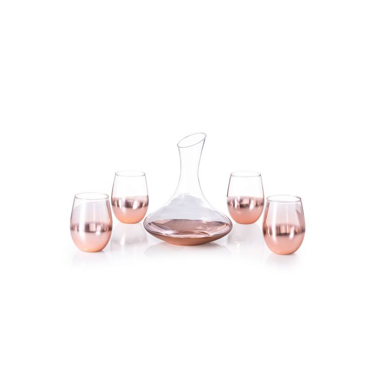 Élégant ensemble de vin en cristal, avec un délicat et innovant revêtement rose dégradé. Un cadeau design qui comprend 4 verres de 500 ml et une carafe de 1,8 l.Présenté dans une boîte individuelle exclusive au design noir. (couleur naturel)