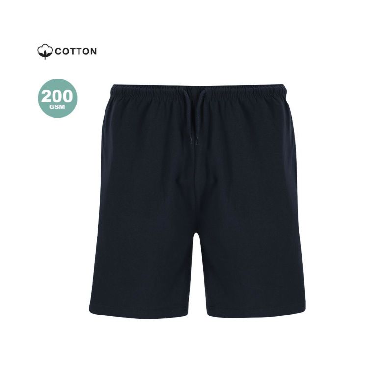 Short unisexe en coton jersey. Avec deux poches latérales et une ceinture élastique avec cordon ajustable assorti.