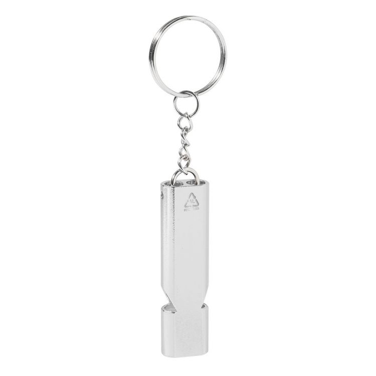Porte-clés sifflet en aluminium recyclé.