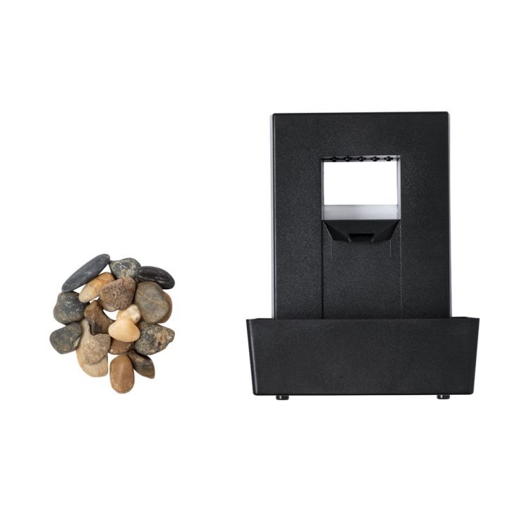 Fontaine d’eau portable infinie avec lumières LED. Cascade d’eau sur des pierres naturelles, idéal pour la décoration ou des moments de détente. Il comprend un réservoir d’eau et une structure éclairée par des LED de tons naturels, à travers laquelle l’eau coule. Alimenté par 3 piles AA (non incluses). Présenté dans une boîte de conception kraft. (couleur noir)