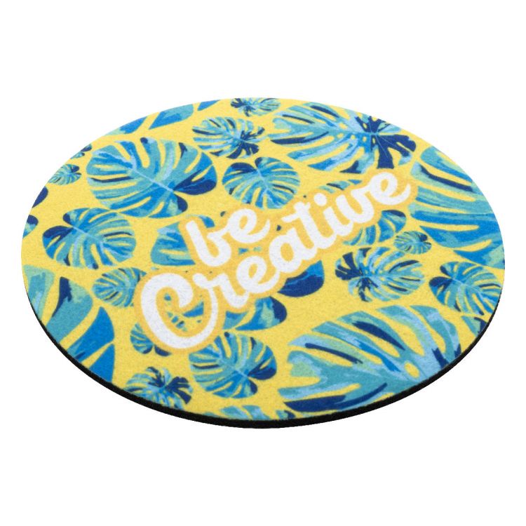 Sous-verre en feutrine RPET sur mesure avec base antidérapante en caoutchouc et impression quadri sur une face. Le prix comprend l'impression en sublimation. Quantité minimale : 100 pièces