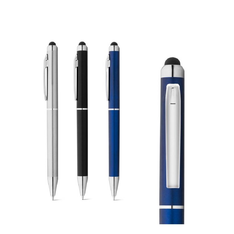 Stylo à bille en ABS avec finition métallique, clip en métal, mécanisme poussoir et pointe tactile
