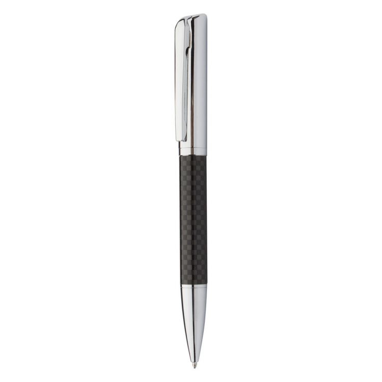 Stylo à bille en métal avec corps en carbone. Encre bleue