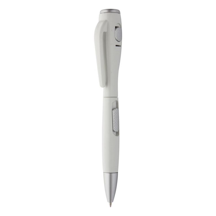 Stylo bille avec lampe LED. Encre bleue. Livré avec 3 piles bouton AG3