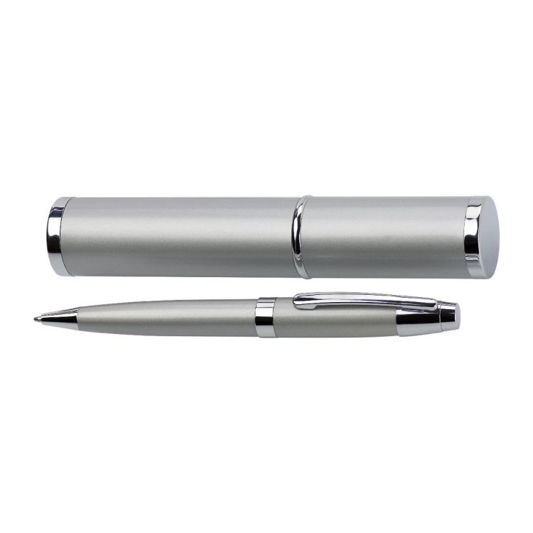 Stylo bille en métal dans un tube en aluminium assorti à la couleur, mine noire.