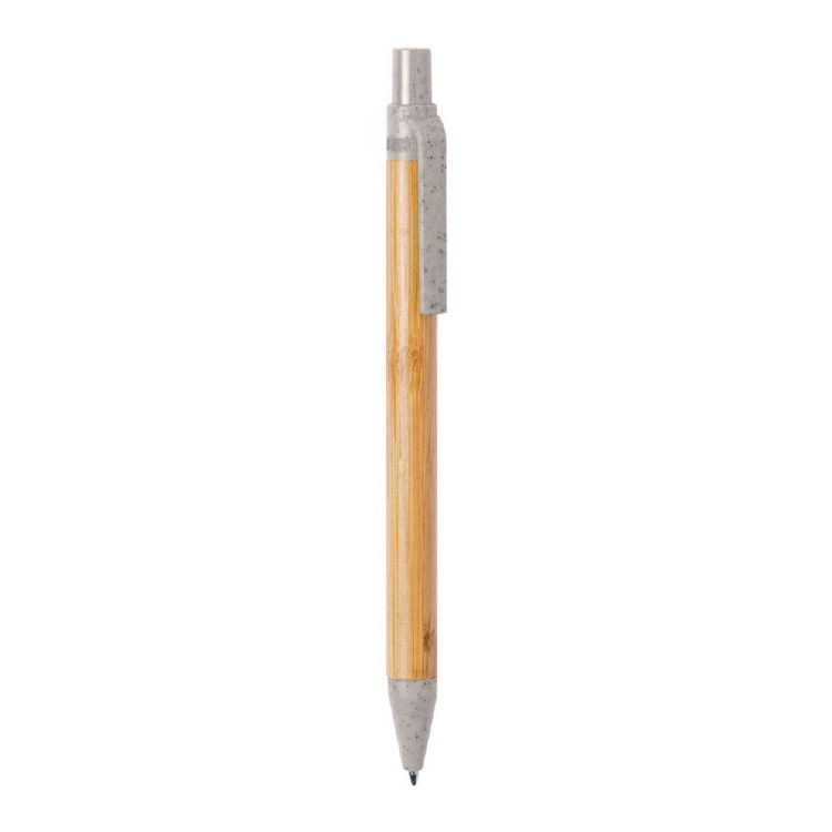 Stylo à bille en bambou avec pièces en plastique écologique en paille de blé. Encre bleue.