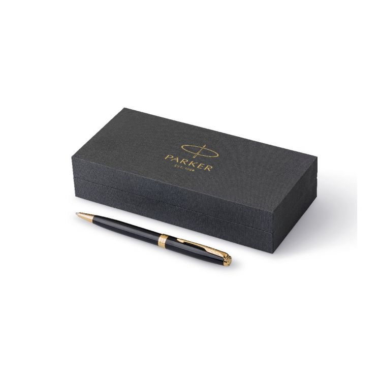 Stylo bille en acier inoxydable et laiton Parker 'Sonnet' dans une boîte cadeau, mine noire.