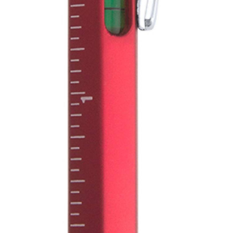 Stylo à bille en plastique avec tournevis plats et cruciforme, niveau à bulle et règles de 7 cm / 3 pouces. Avec clip en métal et encre bleue.