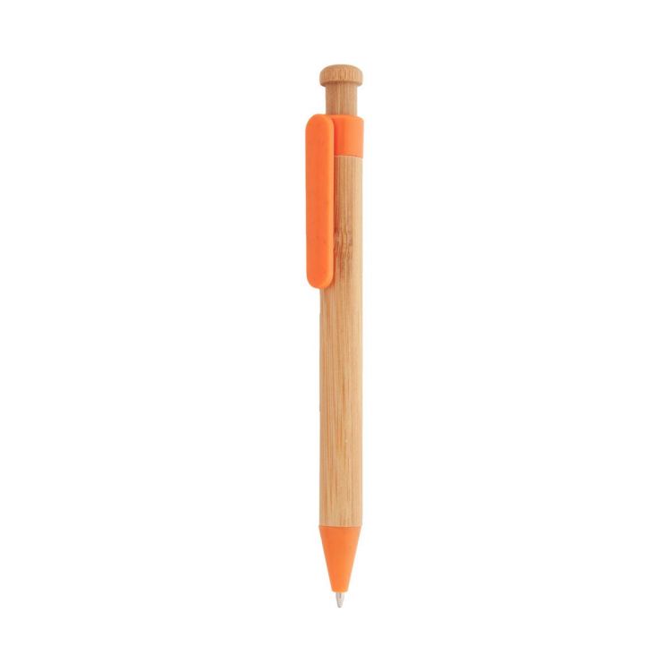 Stylo à bille en bambou avec attributs en plastique de paille de blé écologique. Encre bleue.