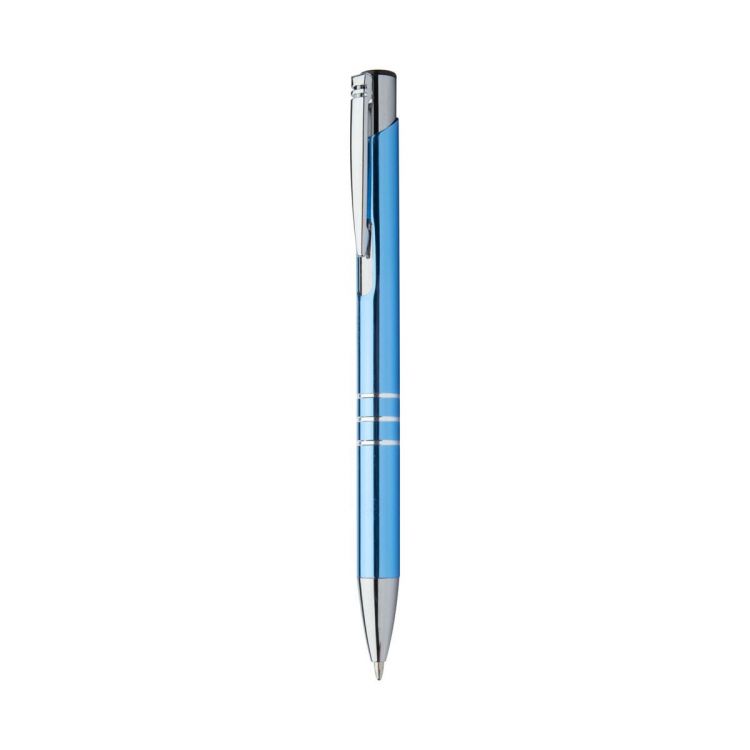 Stylo à bille en aluminium recyclé avec finition métallique et encre bleue.