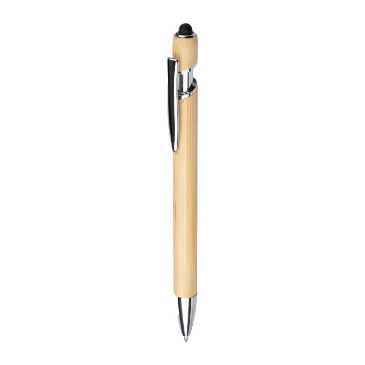 Stylo bille en bambou avec embout pour écran tactile, mine bleue.
