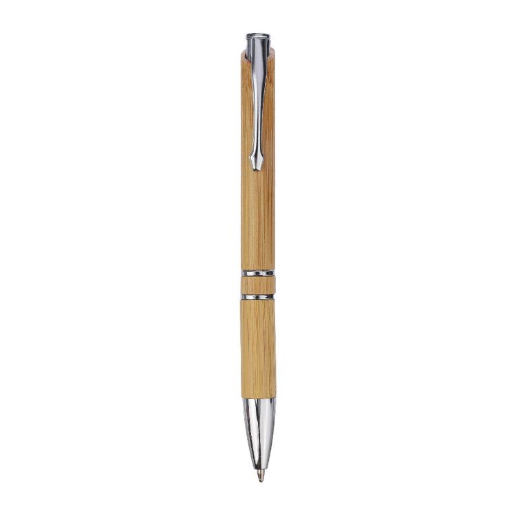Stylo bille en bambou et plastique avec clip en métal, mine noire.