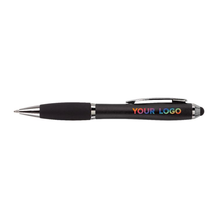 Stylo bille en plastique avec embase en gomme et embout pour écran tactile, mine noire, de couleur blanche