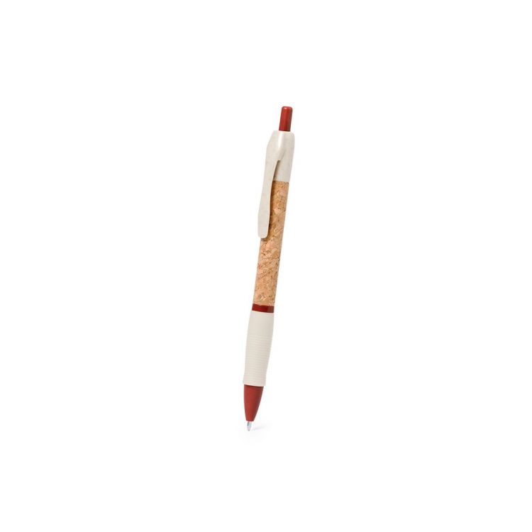 Stylo à bille à bouton-poussoir avec corps en liège naturel. Clip, pointe et bouton en canne de blé. Disponible dans une large gamme de couleurs. Signature Wheat Straw sur le dessus du stylo. A l'encre bleue.Fabriqué avec des éléments végétaux, afin de favoriser l'utilisation de matières premières naturelles et de réduire les émissions polluantes.