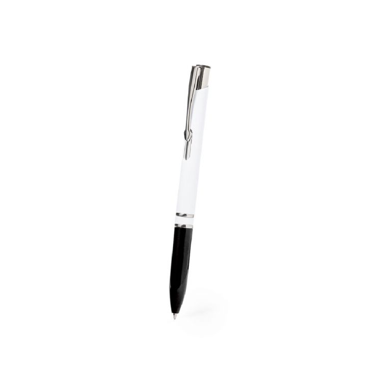 Stylo à bille élégant avec mécanisme à bouton-poussoir. Avec corps finition blanc brillant et poignée dans une large gamme de couleurs. Fabriqué en ABS résistant avec une finition brillante. Avec charge jumbo et encre bleue.