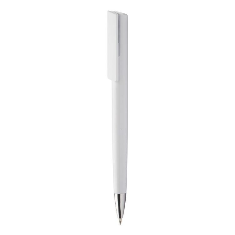 Stylo à bille en plastique avec embout chromé. Encre bleue.