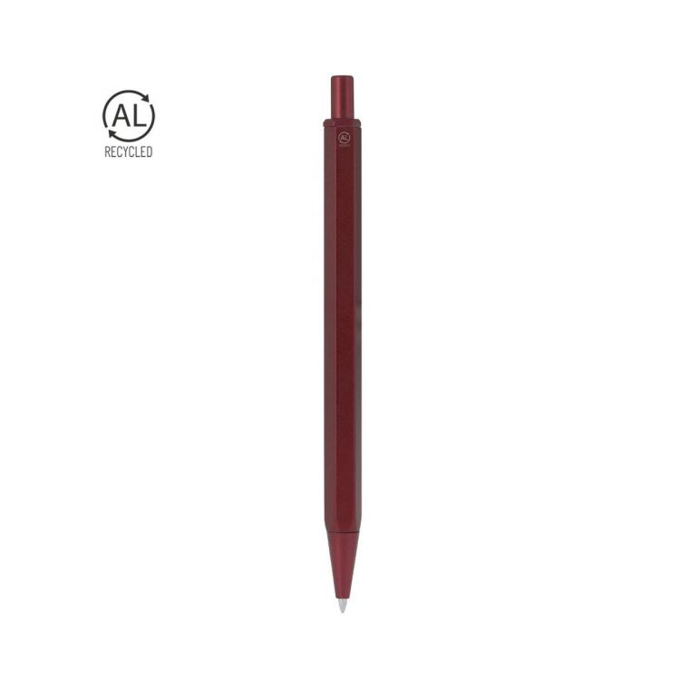 Stylé stylo fabriqué en Aluminium Recyclé. Corps en forme hexagonale distinctive. Mécanisme à bouton fabriqué en ABS Recyclé et encre bleue. Avec logo distinctif d'Aluminium Recyclé marqué sur la tige.L'aluminium recyclé est un matériau offrant des possibilités de recyclage presque infinies, sans perte de ses propriétés originales et consommant moins d'énergie dans ce processus.Certificat GRS (Global Recycled Standard / Norme de Recyclage Mondial), garantissant l'origine recyclée du matériau utilisé pour fabriquer le produit.Le RABS est un plastique hautement recyclable d'une grande résistance avec de nombreuses applications qui en font une solution écologique. Avec certification RCS, garantissant l'origine recyclée de celui-ci et logo RABS gravé.