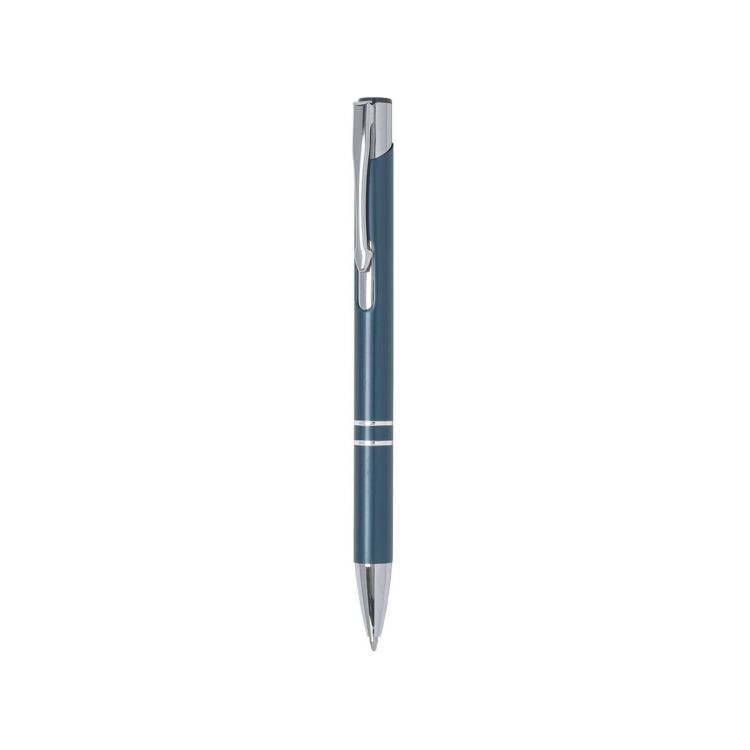 Stylo à bille à bouton-poussoir original dans un design bicolore élégant. Avec un corps découpé en aluminium fin en différentes couleurs. Original clip, anneaux et pointe en argent. Cartouche jumbo et encre bleue.