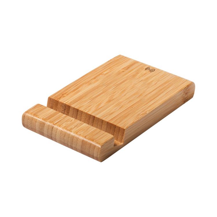 Support de bureau en bambou pour téléphone portable avec chargeur rapide sans fil intégré (15 W). Câble chargeur USB inclus