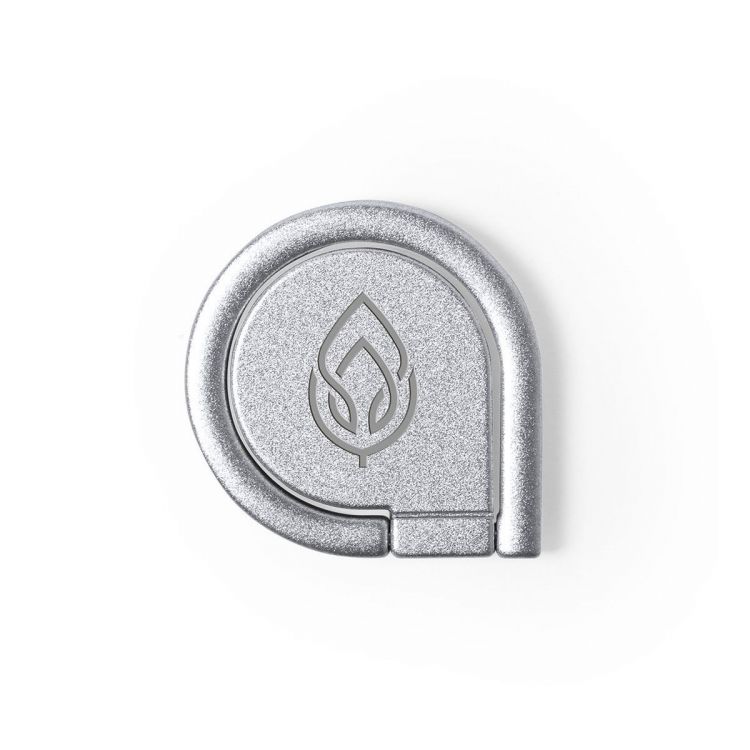 Support métallique pour smartphone en finition mate. Design élégant et avec adhésif 3M, fixation extra forte et sans déchets lors du décollage de l’appareil. Avec support de dos d’anneau pour le doigt et présenté dans le sac de conception individuel. (couleur argent)