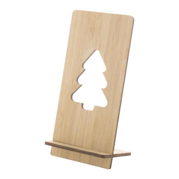 Support pour téléphone de bureau en contreplaqué de bambou avec découpage en forme de motif de Noël. Livré à plat