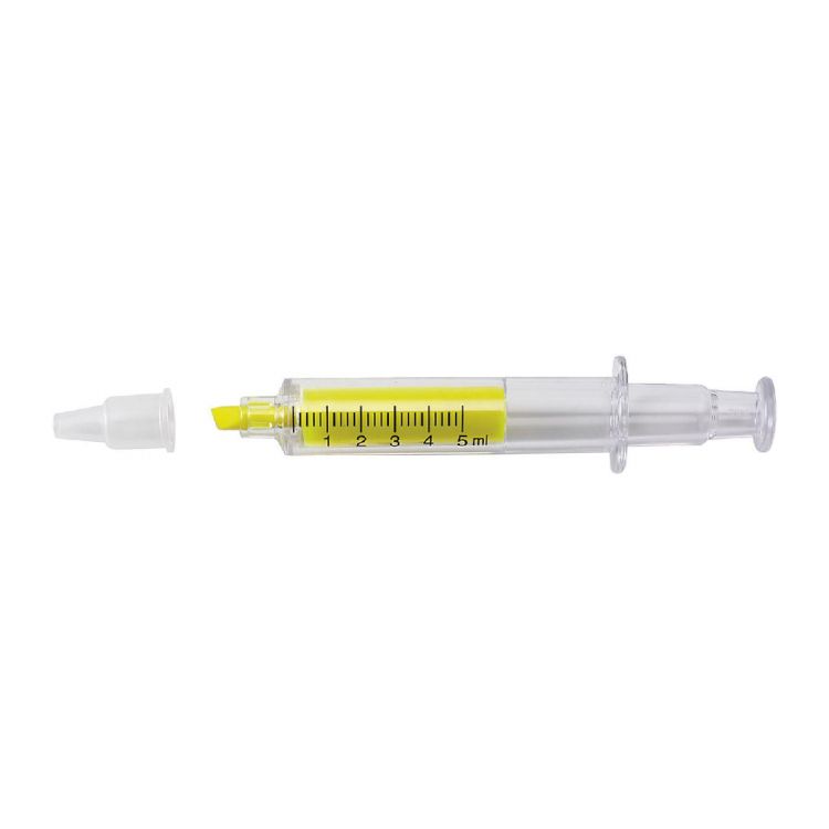 Surligneur 'seringue' en plastique.