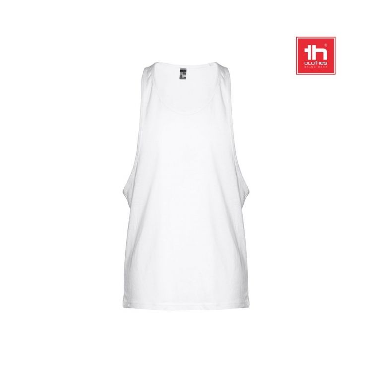 Débardeur pour homme en maille jersey 100% coton (140 g/m²) avec fil de coton cardé. Larges emmanchures et col rond, finitions bords aux emmanchures et au col. Pièce coupée et cousue avec double couture en bas