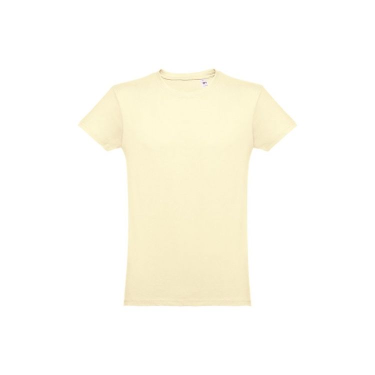T-shirt pour homme de forme tubulaire et coupe régulière en maille jersey 100% coton (150 g/m²) avec fil de coton cardé (couleur 183 : 90% coton/10% viscose). Contient un col côtelé 1x1 avec bande de renfort en jersey et double couture sur les manches et le bas. Produit en couleur jaune clair, taille XS