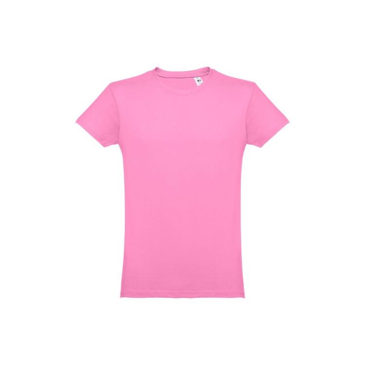 T-shirt pour homme de forme tubulaire et coupe régulière en maille jersey 100% coton (150 g/m²) avec fil de coton cardé (couleur 183 : 90% coton/10% viscose). Contient un col côtelé 1x1 avec bande de renfort en jersey et double couture sur les manches et le bas. Produit en couleur rose clair, taille XS