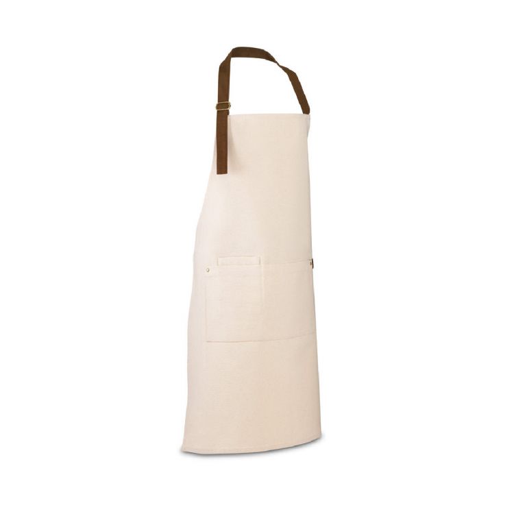 Tablier en toile 100% coton (320 g/m²) avec détails en métal. Avec 3 poches multifonctionnelles et une bande latérale (pour un support de torchon de cuisine). Sangle de cou facilement réglable. Livré dans une enveloppe en papier kraft fabriqué à partir de matériaux certifiés FSC™ et d'autres matériaux contrôlés. Produit en couleur naturel