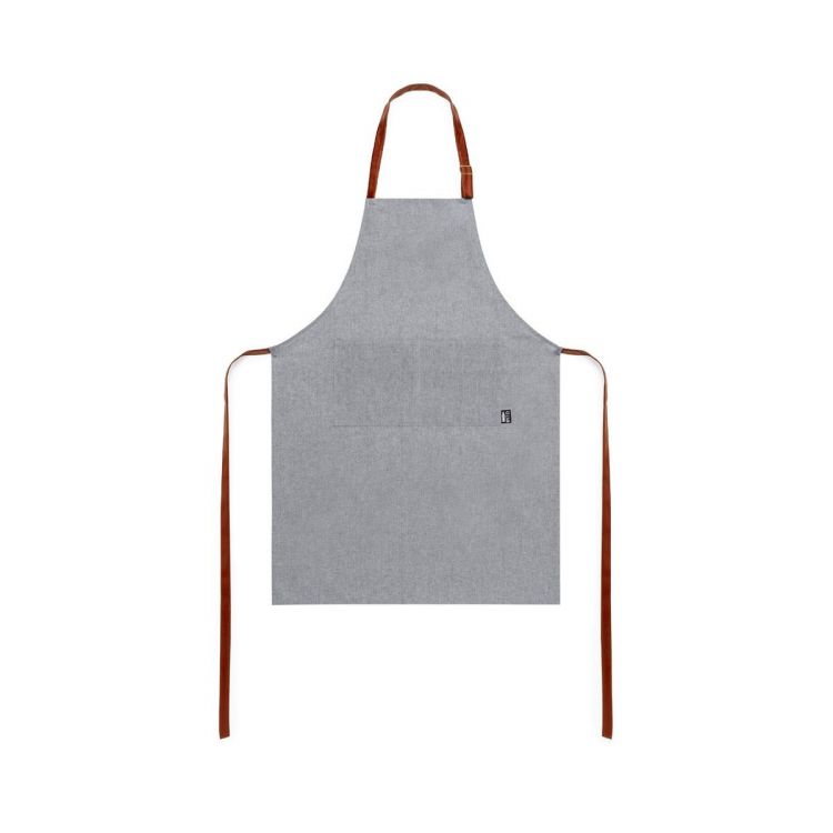 Tablier de la ligne Nature en matériau RPET, fabriqué à partir de plastique recyclé, afin d'encourager la réutilisation des déchets plastiques et d'aider à la durabilité de la planète. Coupe sous le genou, avec des sangles de réglage en similicuir résistantes et une grande poche avant. Étiquette de poche avec logo RPET. (couleur gris)