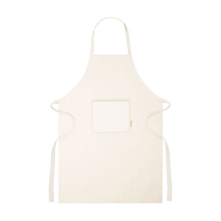 Tablier de la collection Gamme éco-friendly, coton bio. Réglable avec poche avant, coupe sous le genou. Étiquette label matière Coton organique pour véhiculer une image éco-friendly. (couleur naturel)