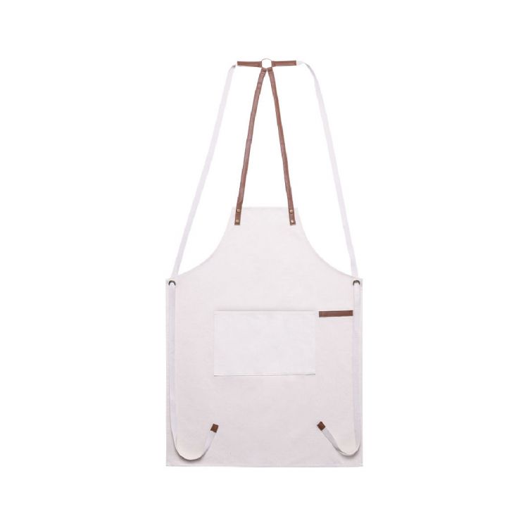 Tablier de haute qualité en toile résistante coton de 340g/m2, avec coutures renforcées. Coupe en dessous du genou, avec des sangles en similicuir résistantes et un triple réglage : cou, dos et taille. Avec poche frontale, accessoire en similicuir et rivets métalliques pour le renfort. (couleur naturel)