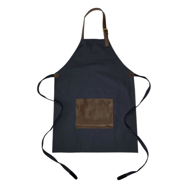 Tablier hydrofuge en canvas 450 g/m2 avec poche frontale en rPET et PU avec tour de cou réglable.