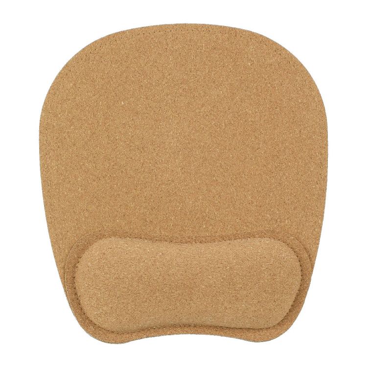 Tapis de souris ergonomique en liège avec repose-poignet et dos antidérapant.