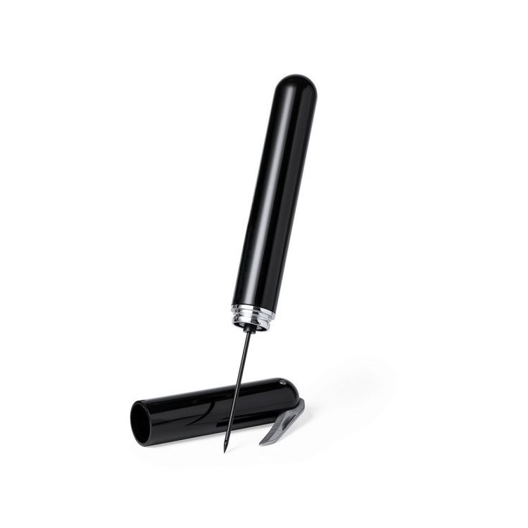 Tire-bouchon avec pompe à air intégrée, pour une extraction facile et sûre du bouchon de liège. Fabriqué en matériau ABS résistant et avec coupe-capsule. Présenté dans une jolie boîte au design individuel. (couleur noir)