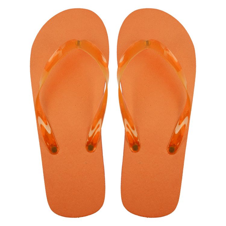 Tongs en PE avec bandes en PVC transparentes de couleur assortie.