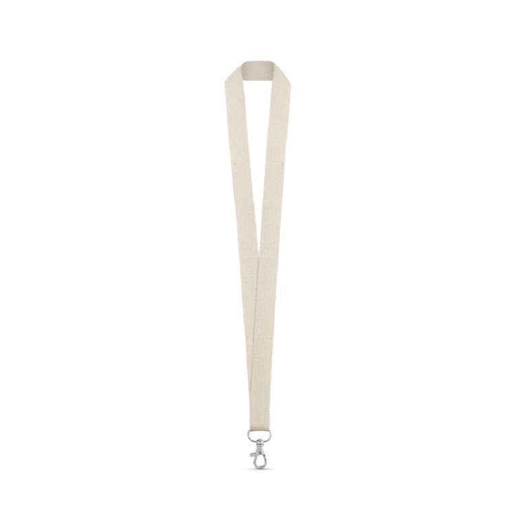 Tour de cou 100%coton avec mousqueton en métal. Fabriqué en Europe. Produit en couleur naturel