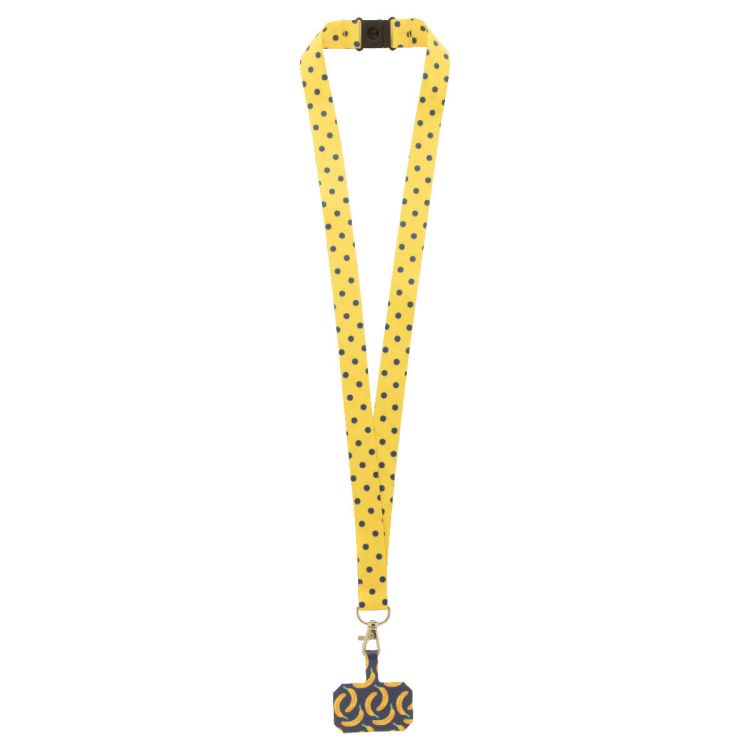 Tour de cou support de téléphone portable en RPET avec mousqueton en métal, boucle de sécurité et insert de téléphone imprimé en quadri en papier indéchirable. Impression en sublimation sur les deux côtés. Quantité minimale : 100 pièces