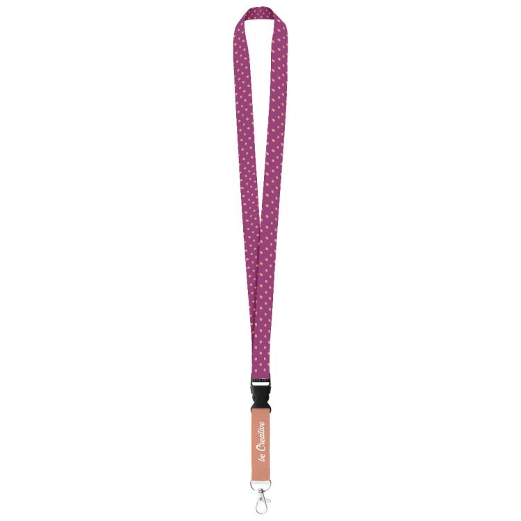 Tour de cou en polyester avec mousqueton métallique amovible. Grâce à la sublimation le logo peut être imprimé sur les deux côtés. Quantité minimale : 100 pcs