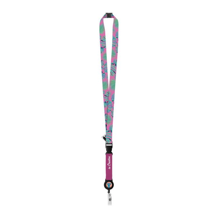 Tour de cou en RPET avec porte-badge amovible et système anti-étranglement. Impression en sublimation sur les deux côtés. Quantité minimum : 100 pièces