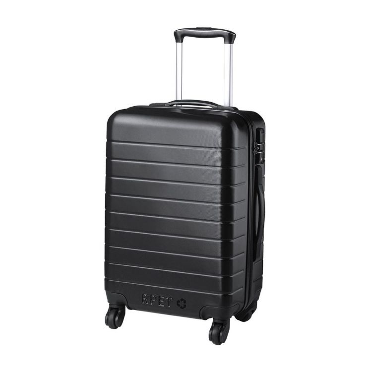 Trolley cabine résistant aux chocs, de la ligne nature, fabriqué en RPET produit à partir de plastique recyclé, favorisant ainsi la réutilisation des déchets plastiques et contribuant à la durabilité de la planète. Poignée de transport télescopique, avec 4 roues pivotantes et fermeture de sécurité TSA. Doublure intérieure en RPET, avec sangles de fixation élastiques incluses. Emblème RPET gravé sur le devant.
