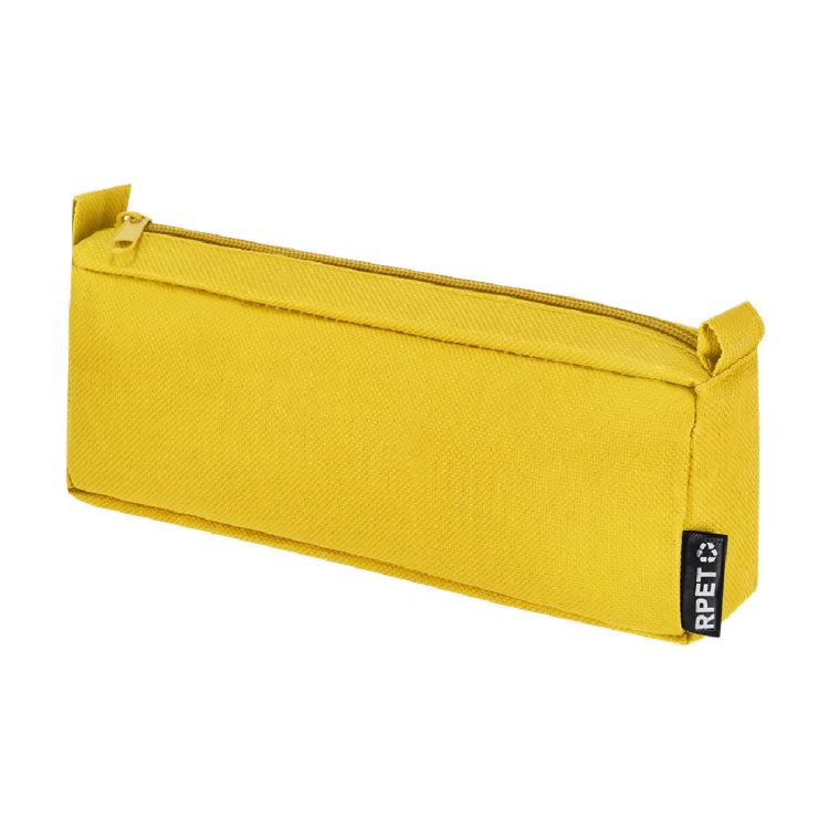 Étui rectangulaire en polyester RPET 600D. Dispose d’une fermeture éclair assortie et de sangles latérales. Comprend logo RPET sur l’étiquette.