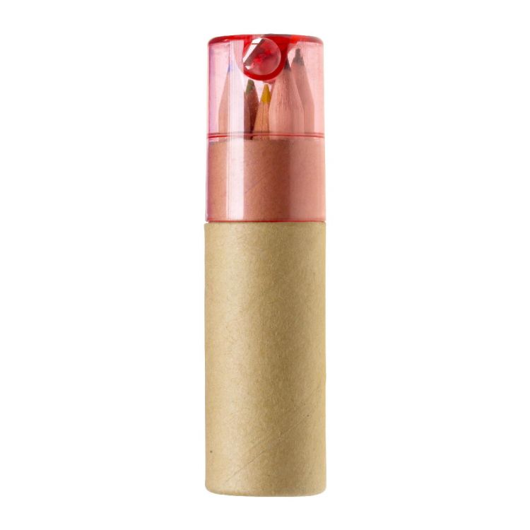 Tube cartonné de 6 crayons de couleur avec taille-crayon.