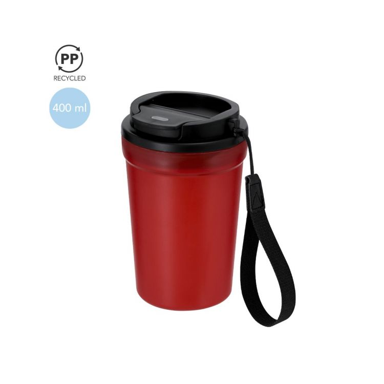 Verre de 360 ml de capacité fabriqué en PP recyclé résistant. Corps en finition givrée translucide. Couvercle hermétique de couleur noire avec doseur facile à ouvrir, sans BPA, avec fermeture à vis et inclut une pratique poignée de transport en polyester. Avec certification de qualité alimentaire, garantissant la sécurité lors du contact des aliments avec le matériau utilisé pour fabriquer le produit.Le PP recyclé est un plastique recyclé et hautement recyclable, d'une grande résistance et adapté à de multiples applications.
