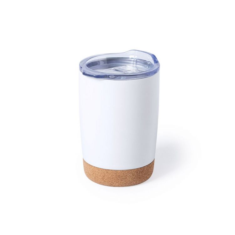 Verre fabriqué en combinaison de base en liège naturel avec corps en acier inox de finition blanche, d'une capacité de 380 ml. Avec double paroi pour une conservation de la température meilleure et plus durable et un bouchon doseur original avec un abreuvoir transparent. Présenté dans une boîte de conception attrayante.