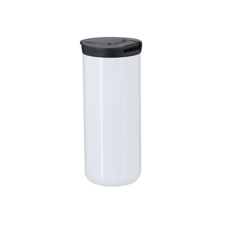Gobelet thermique fabriqué en acier inoxydable à double paroi et d'une capacité de 370 ml. Spécialement conçu pour le marquage par sublimation, finition blanche brillante. Équipé d'un doseur sur le couvercle de couleur noire, conçu pour éviter les fuites et sans BPA. (couleur blanche)