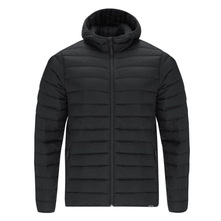 Veste unisexe RPET avec capuche. En matériau extra léger avec rembourrage effet plume et doublure intérieure douce, imperméable et coupe-vent. Poignets, taille et capuche avec passepoil élastique assorti. Ouverture à glissière inversée avec tirette assortie et protège-menton. Comprend 2 poches extérieures latérales avec fermetures à glissière assorties et tirettes, ainsi que 2 poches intérieures. Étiquette RPET sur le passepoil et pochette pratique avec cordon de serrage réglable.